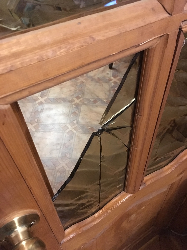 Бывают и такие случаи, когда разбили стекло в металлической входной